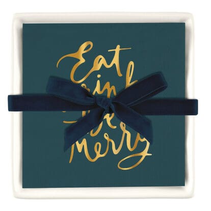 Eat, Drink and Be Merry Ceramic Napkin Tray + Napkins
