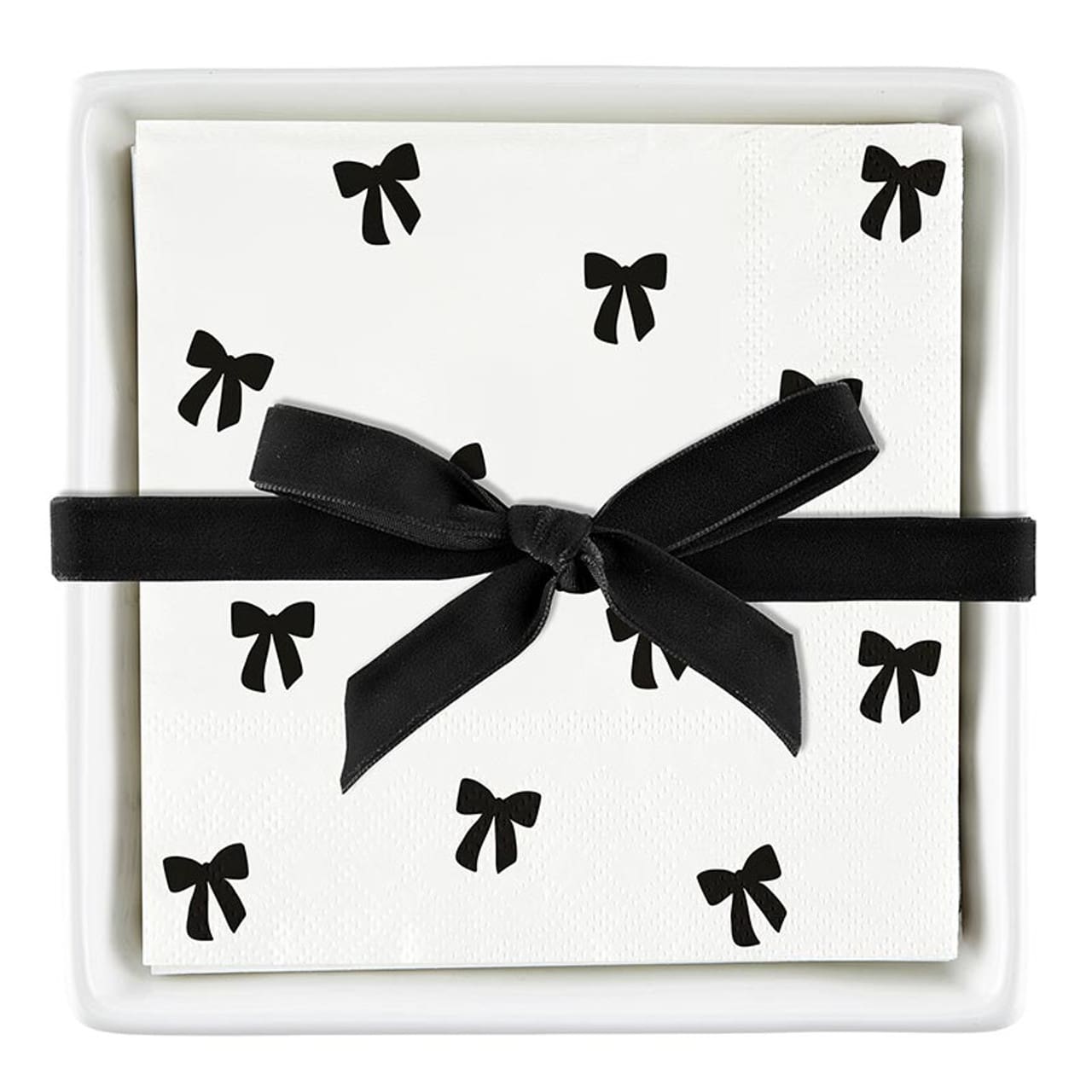 This ceramic napkin tray with paper cocktail napkins is a stylish and practical accessory for organizing and presenting napkins during social gatherings or special occasions. Has a touch of velvet to elevate the look!