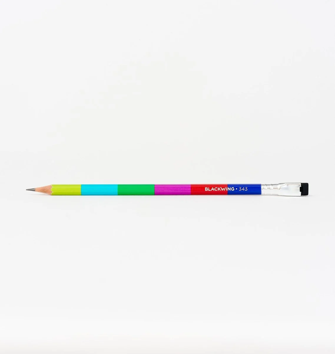 The Blackwing 343 is our tribute to broadcast television. Each pencil features a color bar finish inspired by the NTSC test pattern, and our extra-firm graphite. The model number 343, a reference to the 343 scanlines on early CRT televisions, is imprinted with a “TV snow” silver holographic foil.