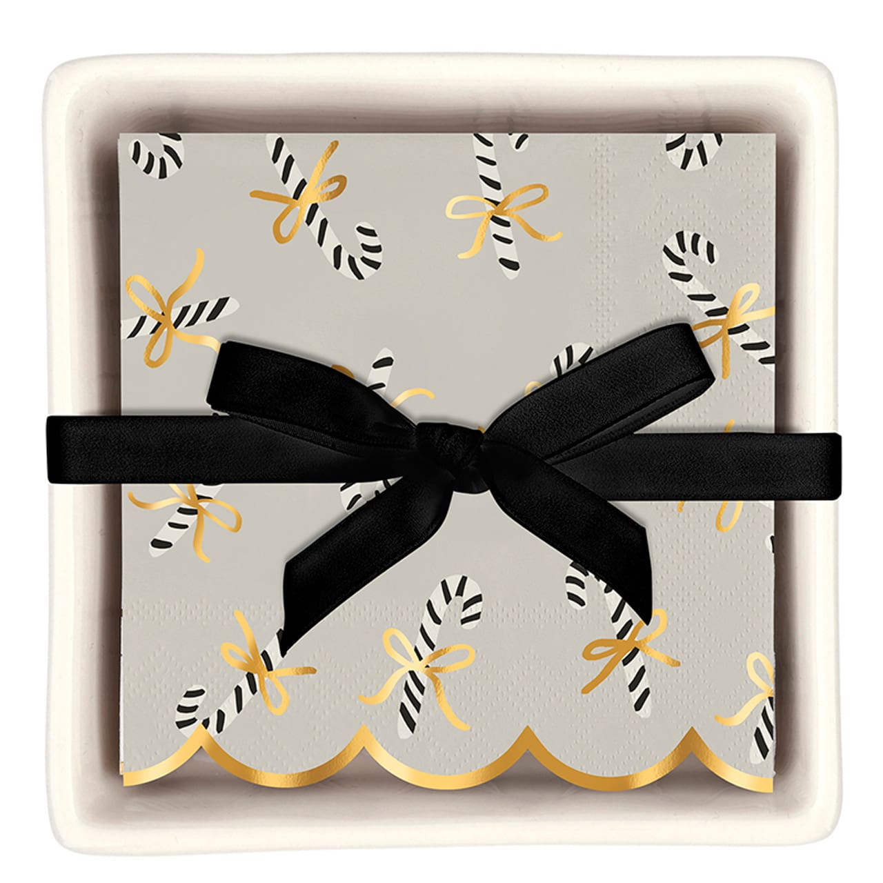 Ceramic Napkin Tray + Napkins – Candy Canes