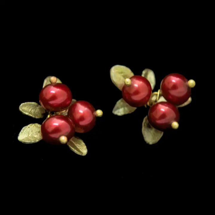 Cast bronze with a hand patina finish. Accented with cranberry freshwater pearls. The posts are 925 sterling silver.