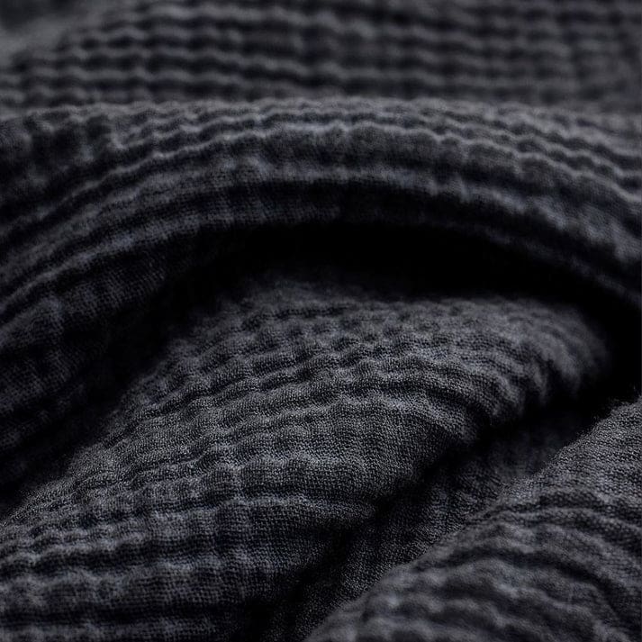 This cotton-linen blend is structured but soft, luxurious and breathable, with low maintenance care without the need for ironing, making it perfect for travel and resort wear. Each piece is dyed using an artisanal dyeing and washing technique, giving each piece a unique lived-in color and an ultra-soft hand feel.