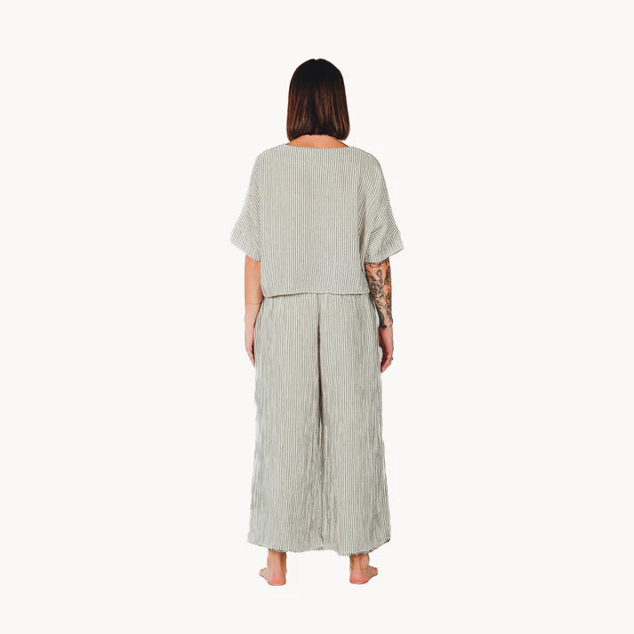 A wide-leg, luxurious, yet comfortable pant, designed sustainably for travel and to pair with everyday, every-situation outfits.