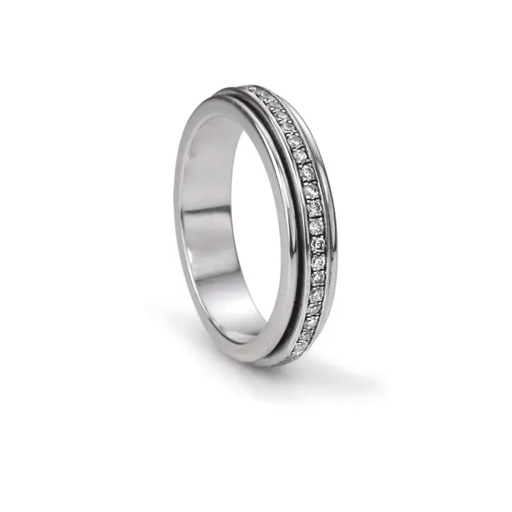 Sterling Silver Meditation Ring with butterfly pattern and two spinning bands.