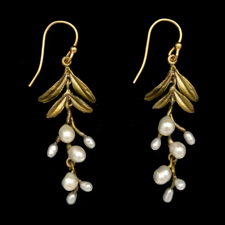 cast in hand-patinated bronze and accented with different sized freshwater pearls. the wires are 925 silver and a 24k gold plating.