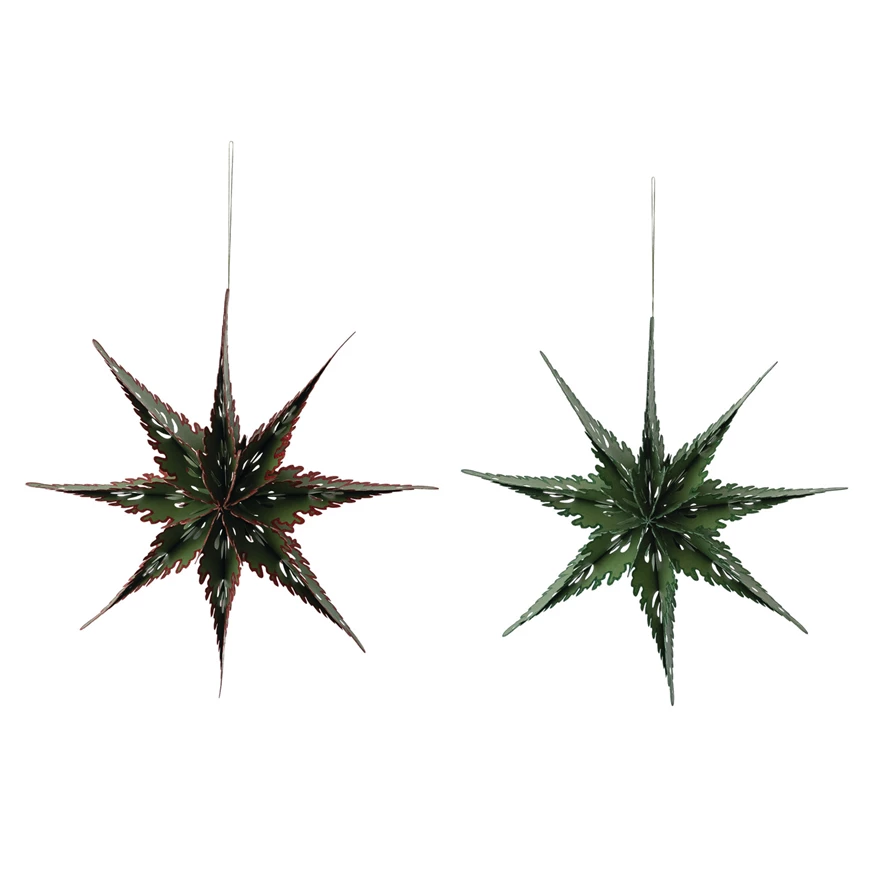 Recycled paper folding snowflake ornament with glitter edge. Available in 2 sizes ( 18″ or 12″) and also available with red or green glittered edge.