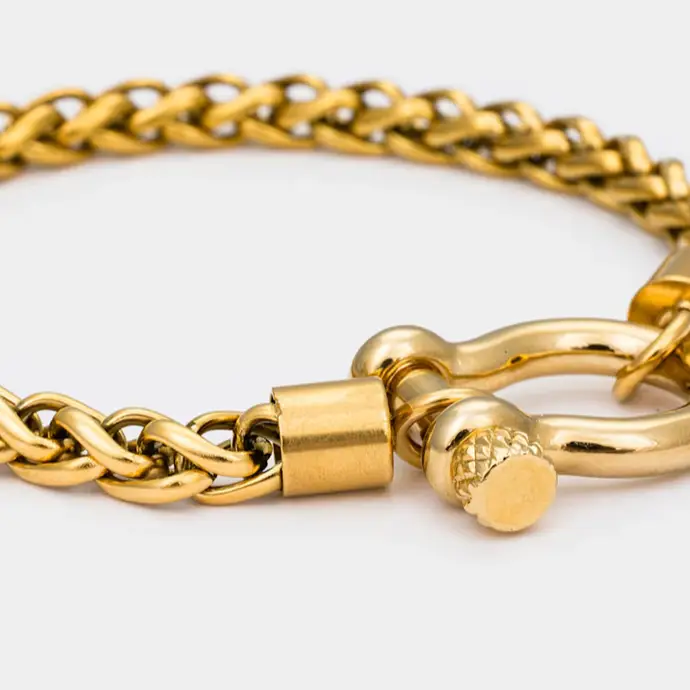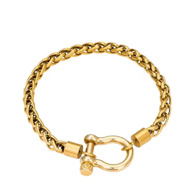 Horse bit carabiner on this bracelet will open to hold your charms. PVD plated, stainless steel that will provide years of wear without tarnish. This bracelet is rhodium plated and is available in the 14k gold plated steel.