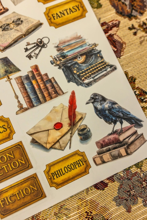 Step into the quiet magic of old libraries with this beautifully crafted sticker sheet, inspired by a lifelong love for books and the timeless charm of cozy reading nooks. Each design captures the warm, nostalgic feeling of wandering between dark wooden shelves, discovering forgotten tomes’, and breathing in the soft scent of aged paper. Perfect for journaling, pen pal letters, planners, scrapbooks, and anyone who adores the hush of a quiet library and the whisper of turning pages. Size: A5 14×21 cm
