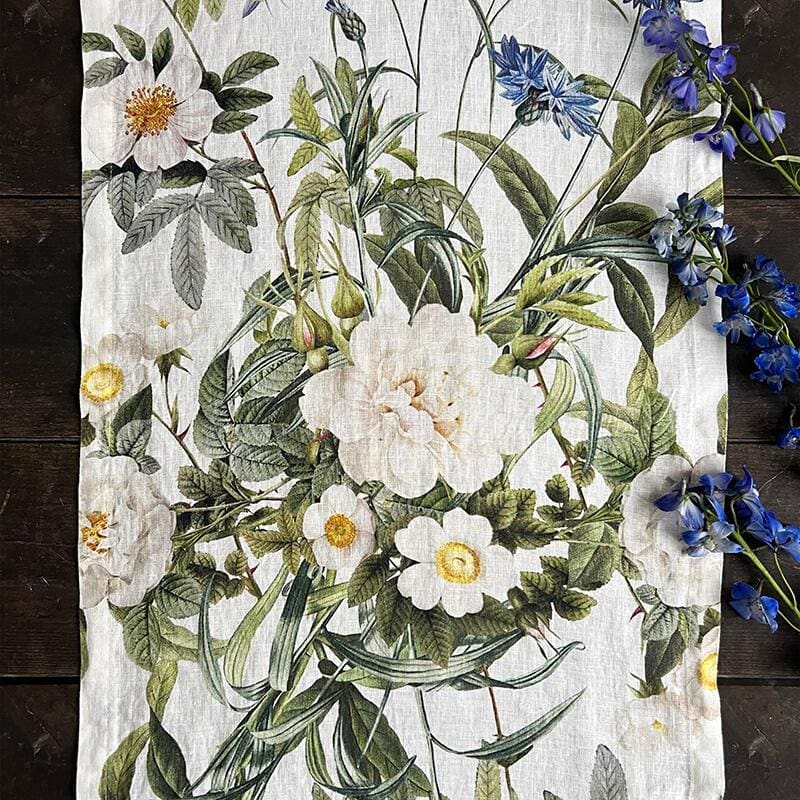 The table runner is made from 100% naturally cultivated linen and printed with eco-friendly dyes, making it both sustainable and practical. It can be washed at 40°C and does not shrink, so it will stay beautiful and functional for many years.
