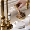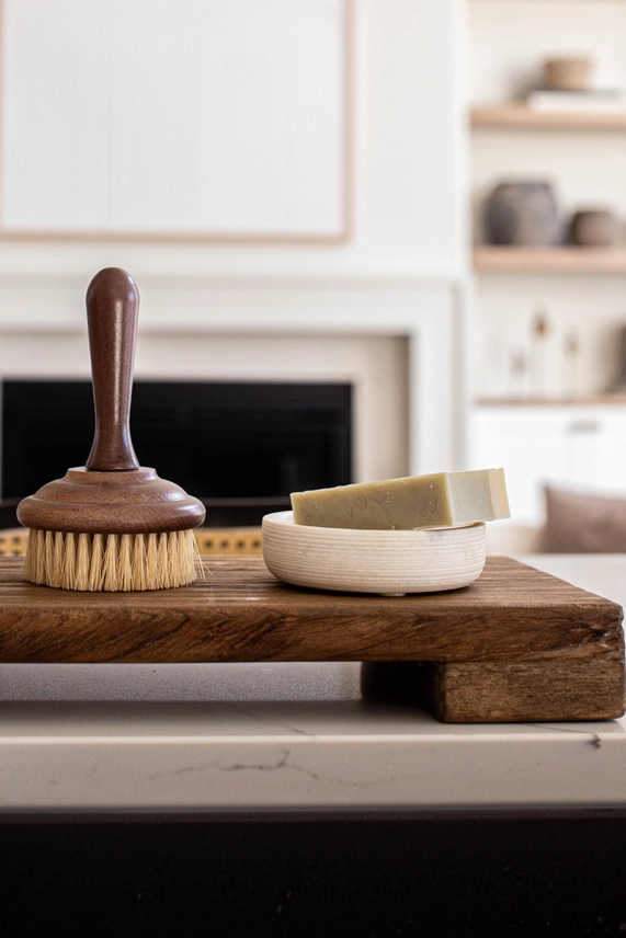 Brush Holder is carved from solid marble and features subtle ribbed texture on its interior. This functional and stylish accessory works beautifully in any kitchen or bathroom setting.