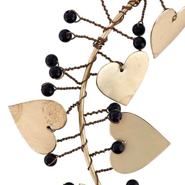 Handmade, crafted specifically from bright brass, this delicate circlet wreath is lined with dangly heart-shaped charms and berries, making a lovely addition to your home décor.