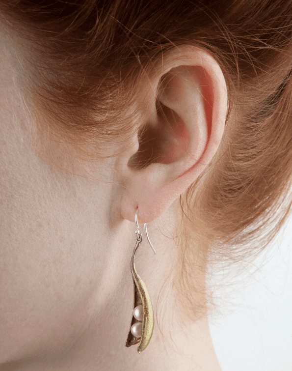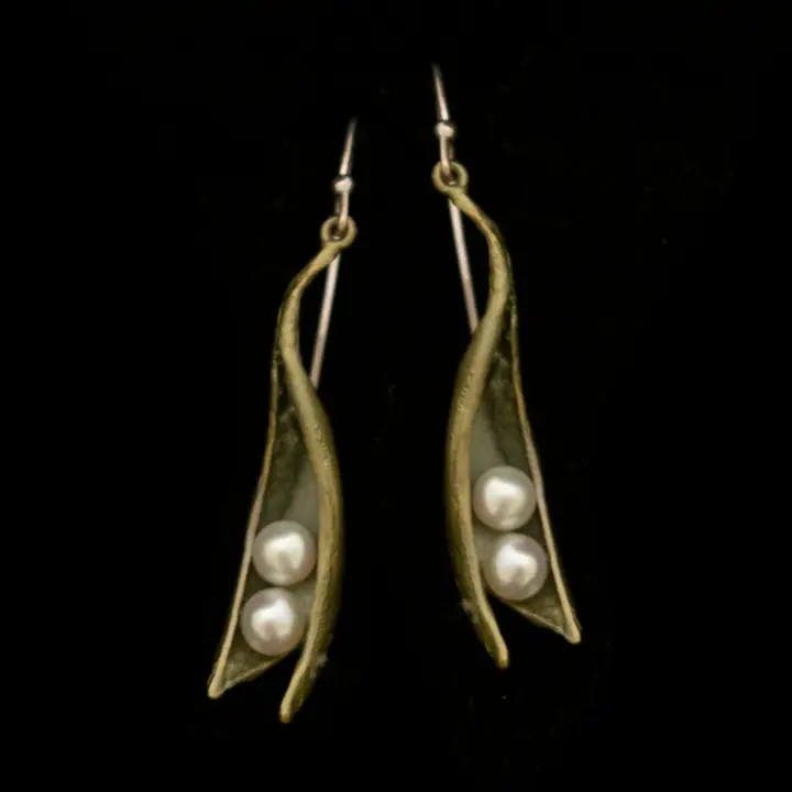 Pea Pod 2 Pearl Drop Wire Earrings