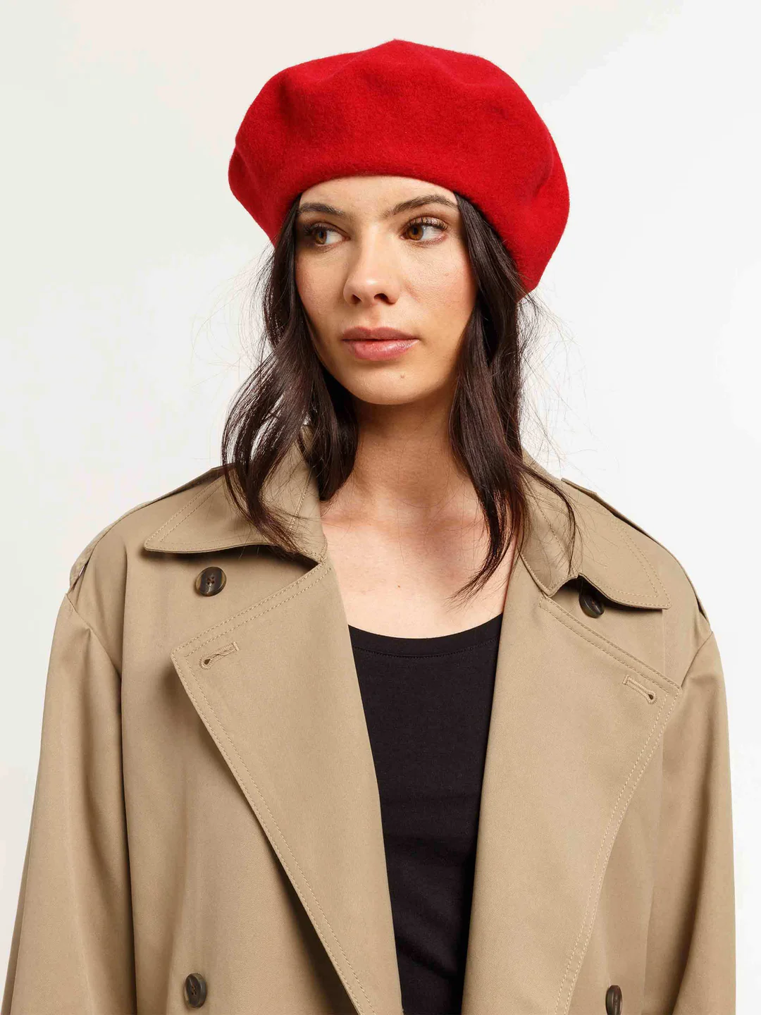 Protect your style with the timeless beret made of pure wool. The high-quality material ensures pleasant warmth and is also water-repellent against light rain showers. The natural wool offers breathable comfort, ideal for changeable weather. Wear the hat casually with jeans or elegant outfits – perfect for any occasion. A must-have for fashion-conscious women who appreciate quality and style. Stay chic no matter what the weather!