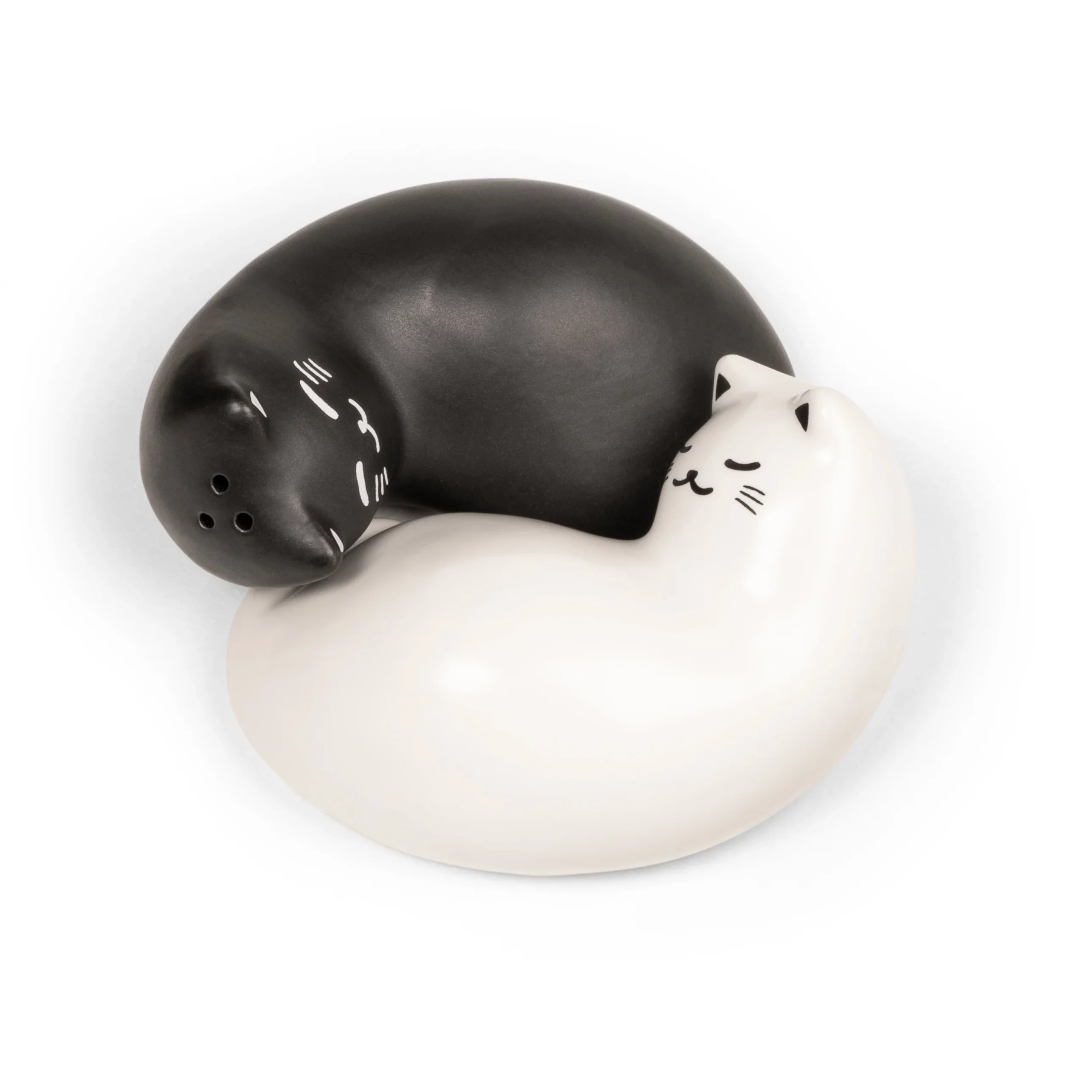 Nestled in purrfect harmony, these salt and pepper shakers add a touch of whimsy to any space. Ceramic.