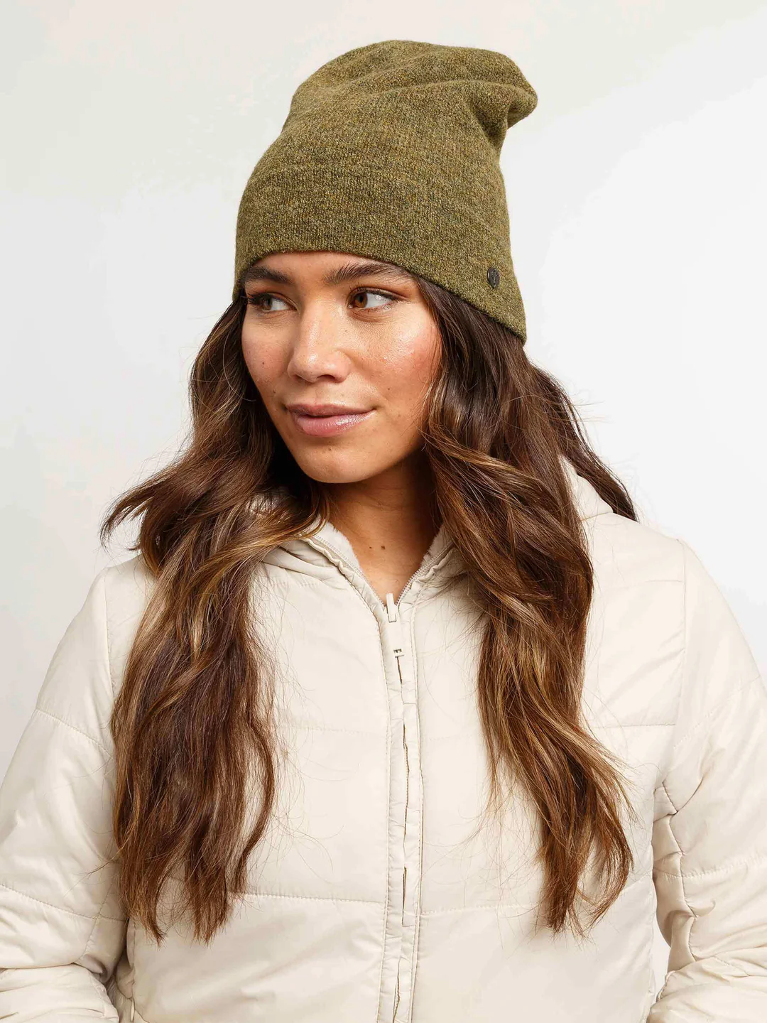 The plain-colored, slightly mottled knitted beanie in a wool blend (24 x 27 cm) keeps you wonderfully warm. The beanie contains recycled polyester made from used PET bottles, which is environmentally friendly and conserves resources. Soft wool makes it comfortable to wear. Perfect for cold days, this beanie is recommended for anyone who wants to combine style and sustainability.