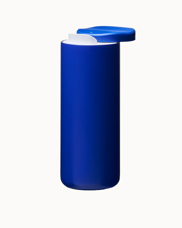 Made from up to 90% recycled stainless steel, the cup features a sliding lid with a “lock function” that guarantees additional protection against leaks.